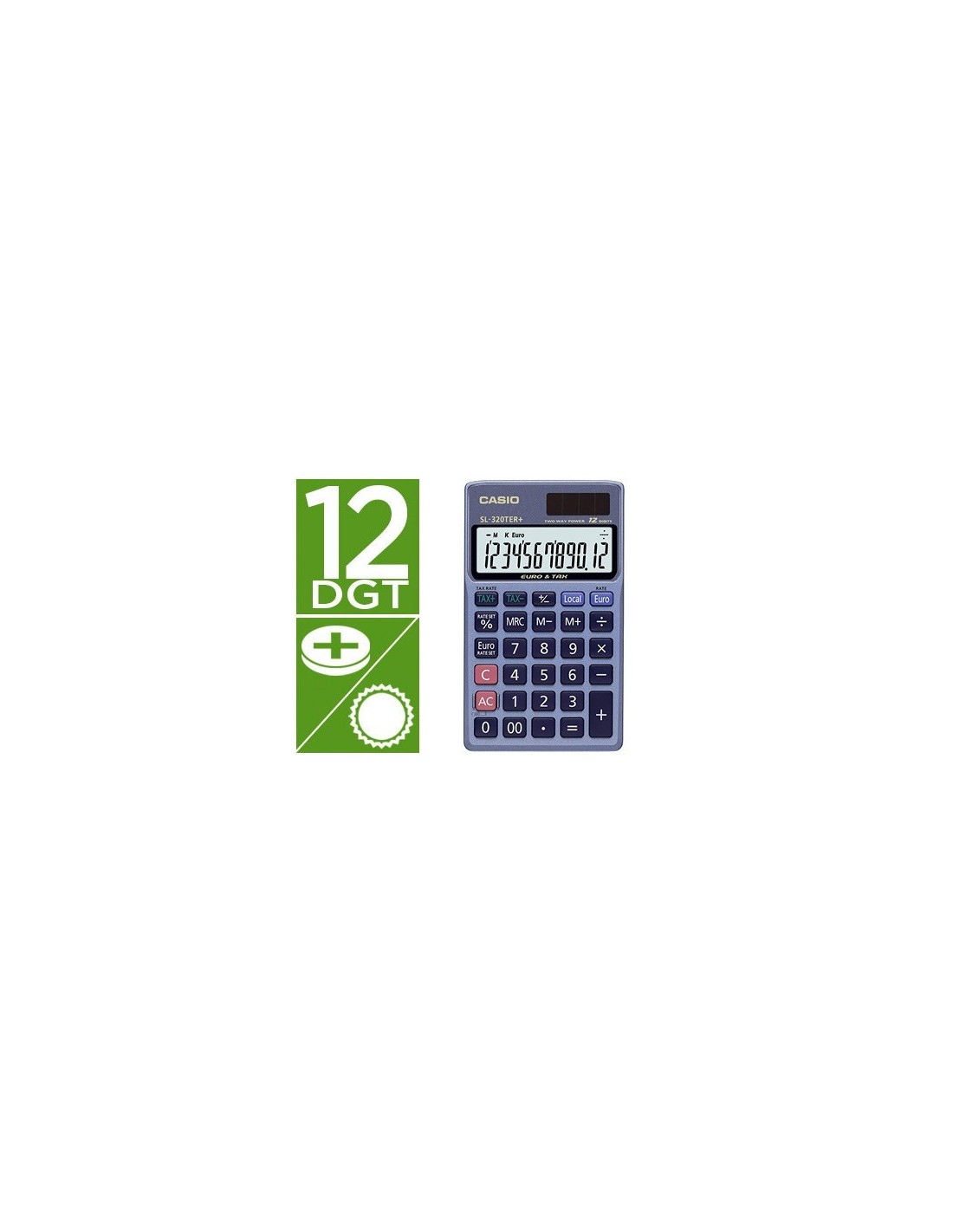 CALCULADORA CASIO SL-320TER BOLSILLO 12 DIGITOS TAX +/- CONVERSION MONEDA TECLA DOBLE CERO COLOR AZUL