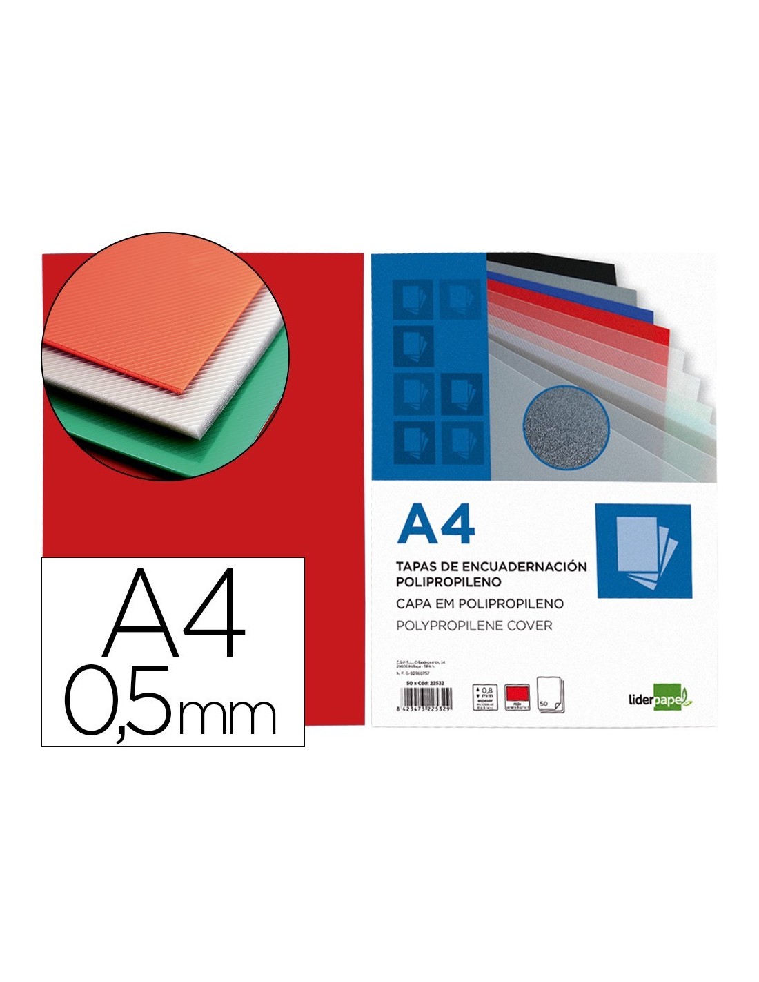 TAPA ENCUADERNACION LIDERPAPEL POLIPROPILENO A4 0.5 MM ROJO TRANSLUCIDO PAQUETE DE 100 UNIDADES