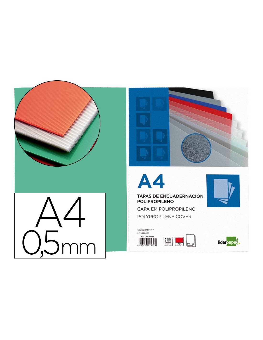 TAPA ENCUADERNACION LIDERPAPEL POLIPROPILENO A4 0.5 MM VERDE TRANSLUCIDO PAQUETE DE 100 UNIDADES