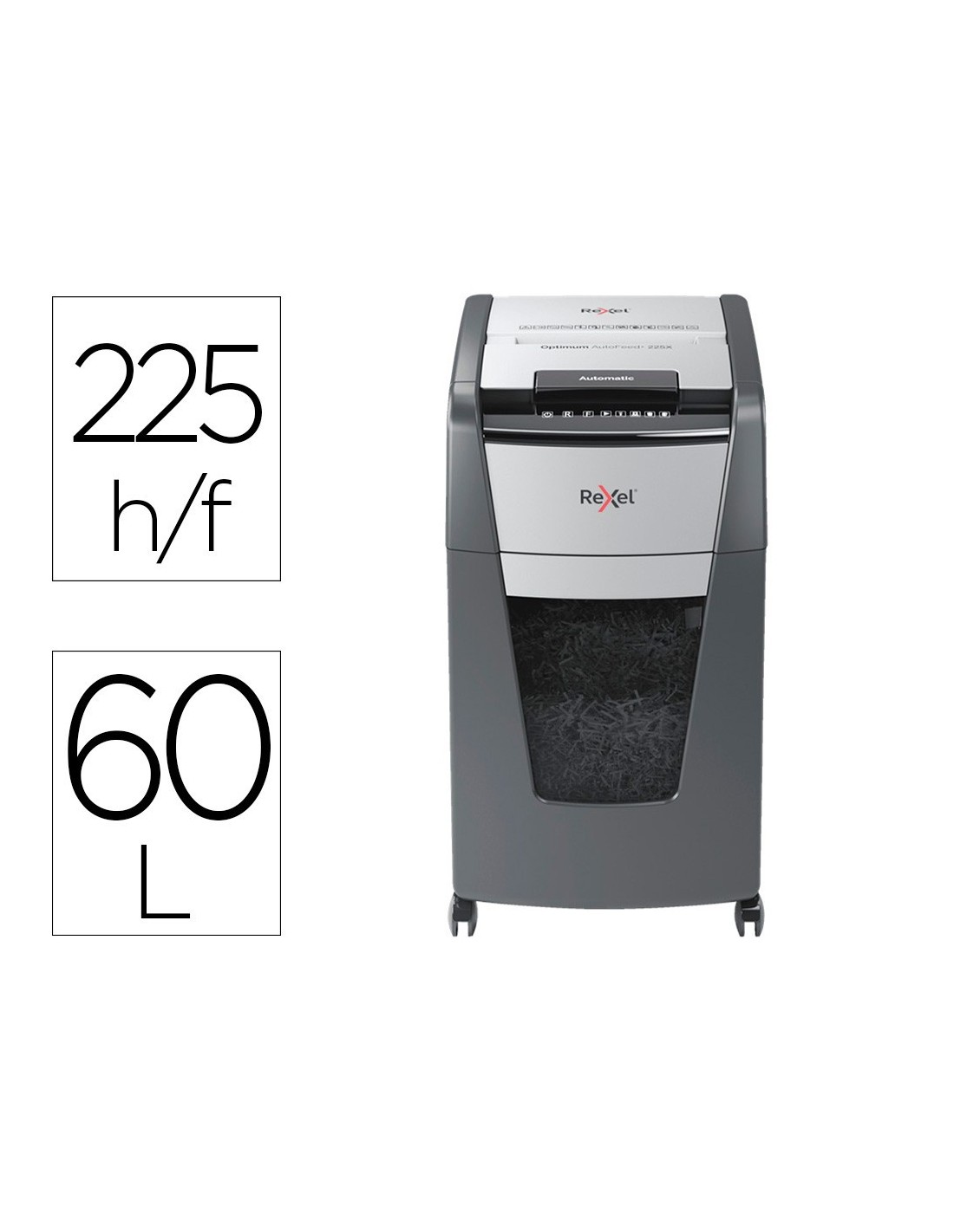 DESTRUCTORA DE DOCUMENTOS REXEL OPTIMUM AUTOFEED+ 225X EU CAPACIDAD DE CORTE 225 HOJAS DESTRUYE GRAPAS Y CLIPS
