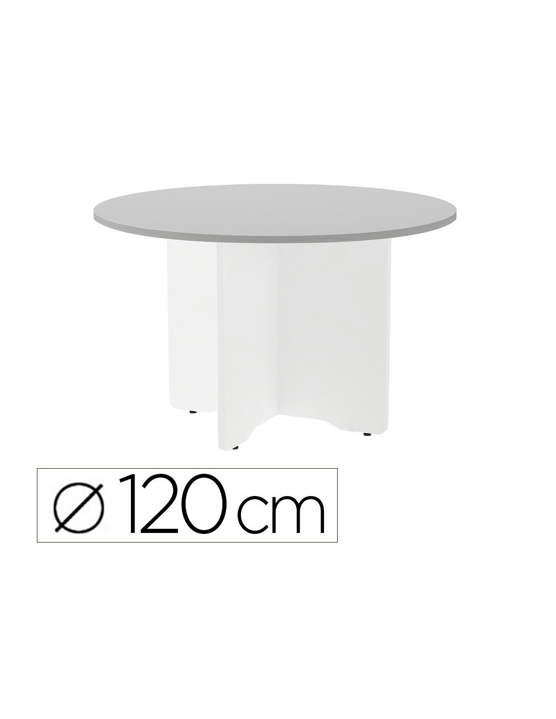 MESA DE REUNION ROCADA REDONDA 3006AW02 ESTRUCTURA MADERA EN ASPAS COLOR BLANCO TABLERO GRIS 120CM DIAMETRO