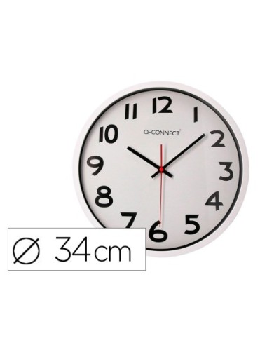 RELOJ Q-CONNECT DE PARED PLASTICO OFICINA REDONDO 34 CM MARCO BLANCO