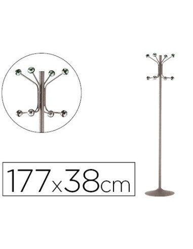 PERCHERO METALICO PIE 8 COLGADORES COLOR GRIS 177X38 CM