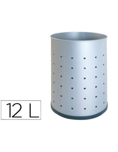 PAPELERA METALICA 101-R PLATEADA PINTADA PERFORADA 315X215 MM