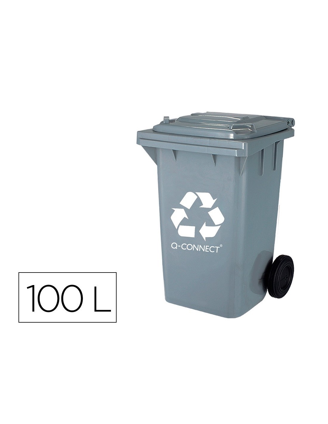 PAPELERA CONTENEDOR Q-CONNECT PLASTICO GRIS PARA DESHECHOS EN GENERAL 100 L CON TAPA Y RUEDAS 750X470X370 MM
