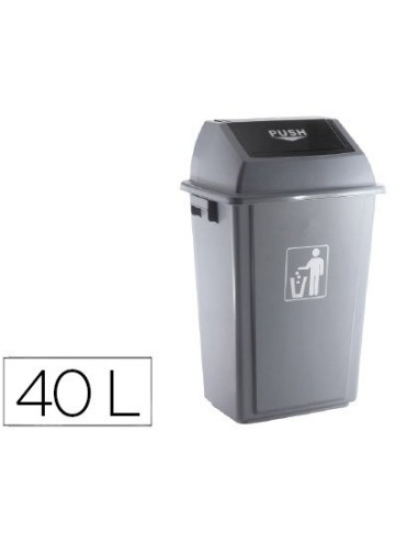 PAPELERA CONTENEDOR Q-CONNECT PLASTICO CON TAPA DE BALANCIN 40 LITROS GRIS 410X280X610 MM