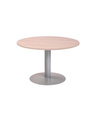 MESA DE REUNION ROCADA MEETING 3005AT04 ESTRUCTURA COLUMNA ACERO GRIS TABLERO MADERA BLANCO 100 CM DIAMETRO