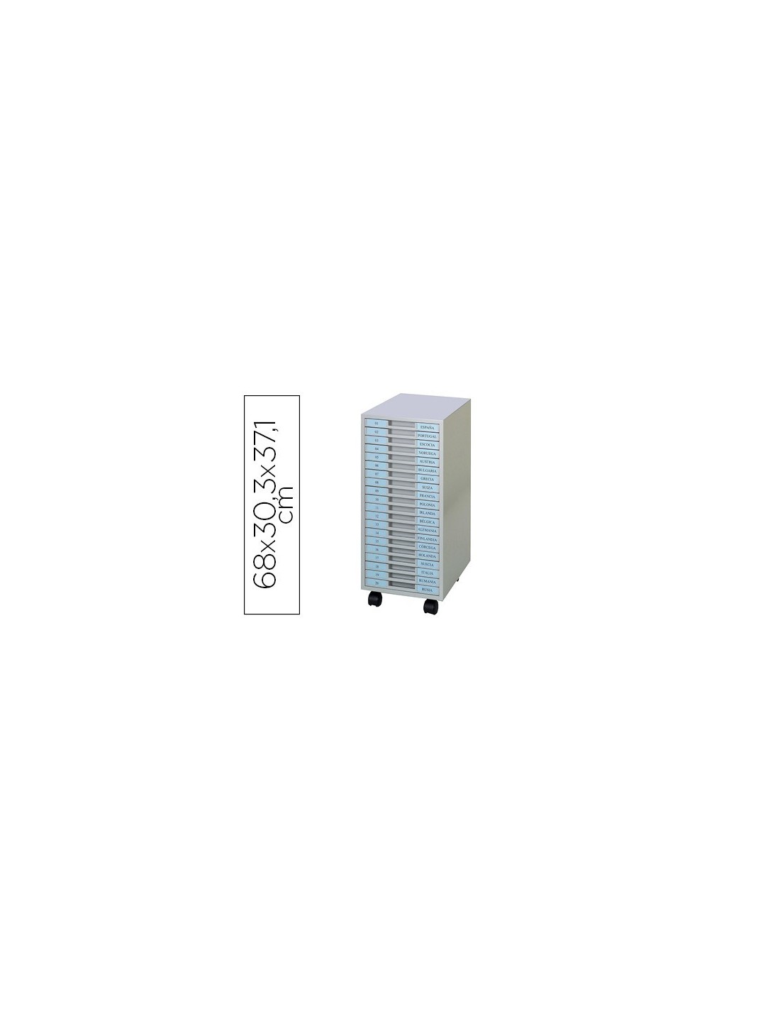 ARCHIVADOR METALICO CLEN 20 BANDEJAS PLASTICO DE 2,5 CM DE ALTURA CON RUEDAS COLOR GRIS CLARO 680X303X371 MM