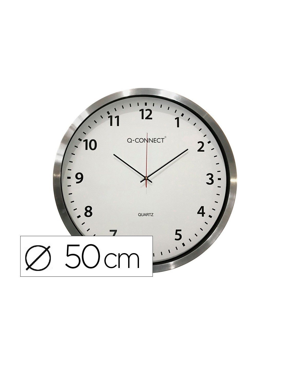 RELOJ Q-CONNECT DE PARED PLASTICO OFICINA REDONDO 50 CM MARCO CROMADO