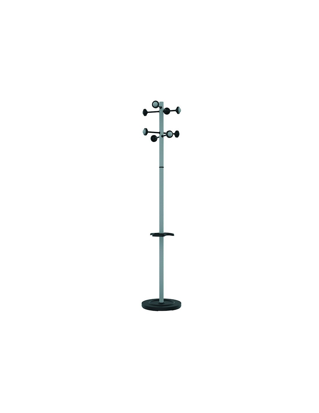 PERCHERO METALICO UNILUX ACCUEIL PIE 8 COLGADORES CON PARAGUERO Y BANDEJA GOTEO GRIS METALIZADO 177 X 38 CM
