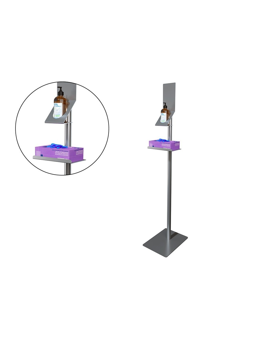SOPORTE DE SUELO DISPENSADOR DE GEL Y GUANTES DE ACERO LAMINADO MEDIDAS 1460X300X390 MM COLOR GRIS