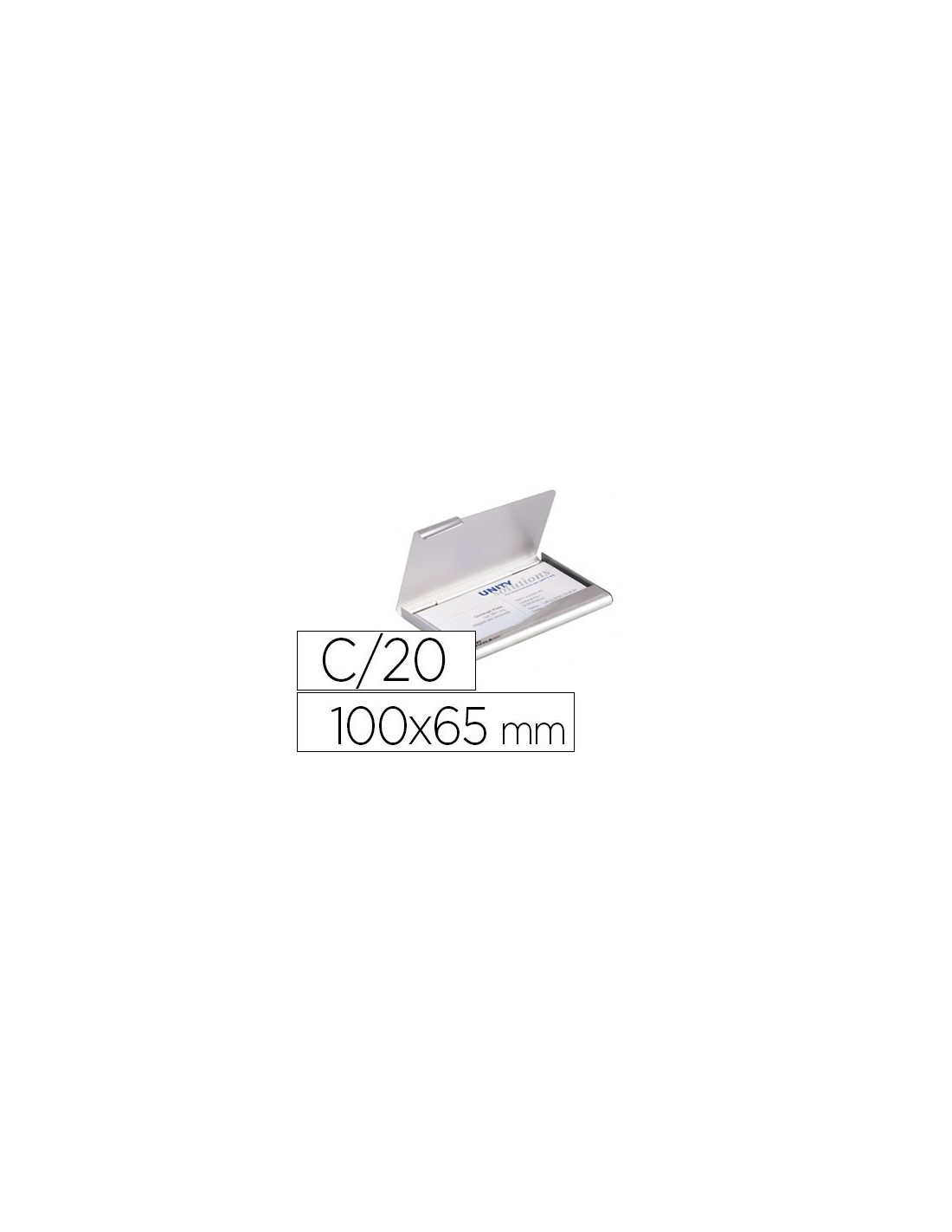 TARJETERO DURABLE ALUMINIO CAPACIDAD 20 TARJETAS DE VISITAS 55X90 MM COLOR PLATA 100X65 MM