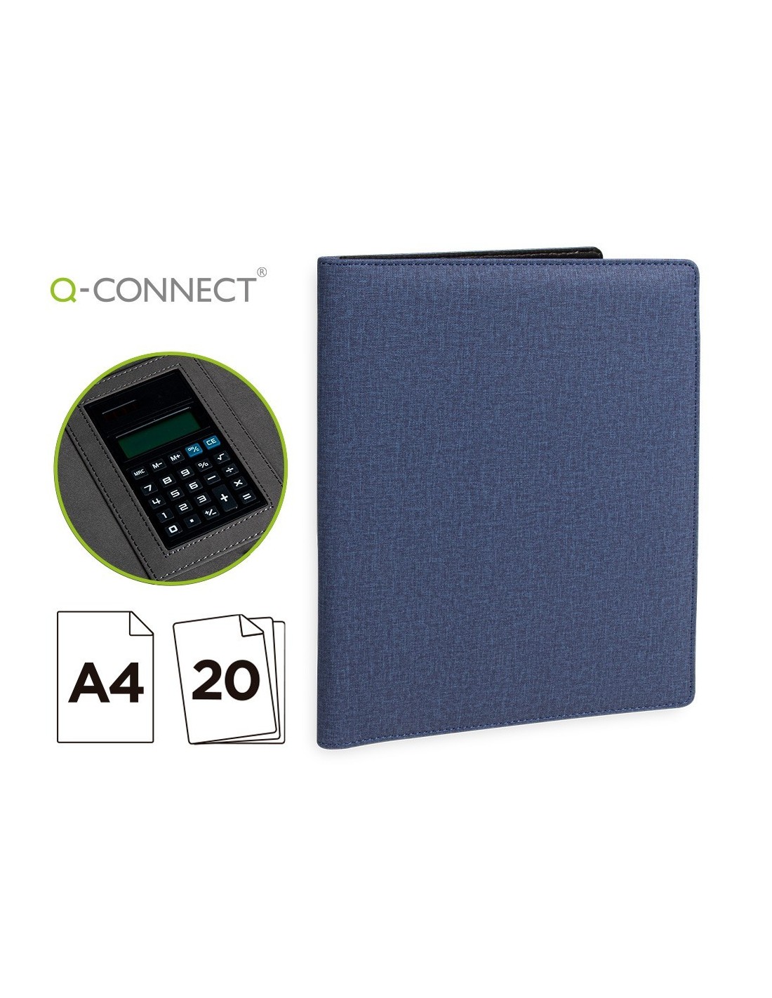 CARPETA PORTAFOLIOS Q-CONNECT A4 CON CALCULADORA BLOC 20 HOJAS Y DEPARTAMENTOS INTERIORES COLOR AZUL 250X315