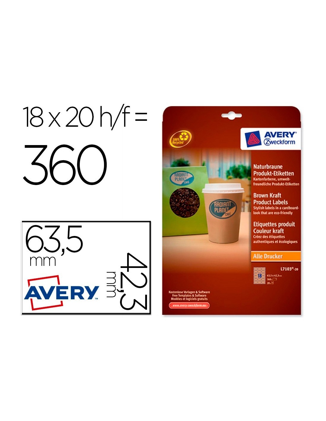 ETIQUETA ADHESIVA AVERY KRAFT EFECTO CARTON OVALADA 63,5X42,3 MM REMOVIBLE PARA LASER INK-JET