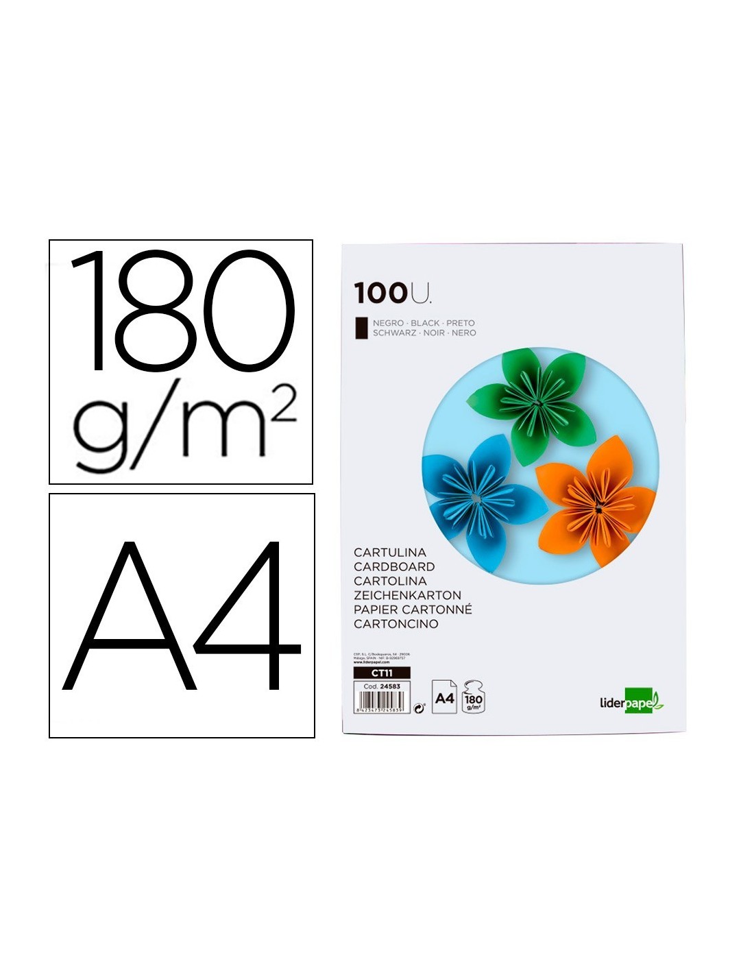 CARTULINA LIDERPAPEL A4 180G/M2 NEGRO PAQUETE DE 100 HOJAS