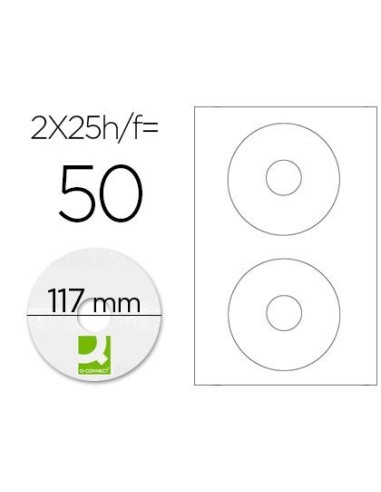 ETIQUETA ADHESIVA Q-CONNECT KF01579 -TAMAÑO CD-ROM -FOTOCOPIADORA -LASER -INK-JET-CAJA CON 25 H/50 ETIQUETAS