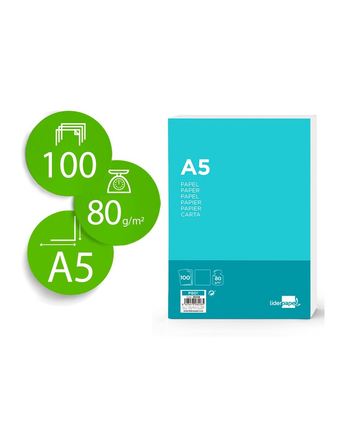 PAPEL LIDERPAPEL A5 80G/M2 LISO PAQUETE DE 100 HOJAS