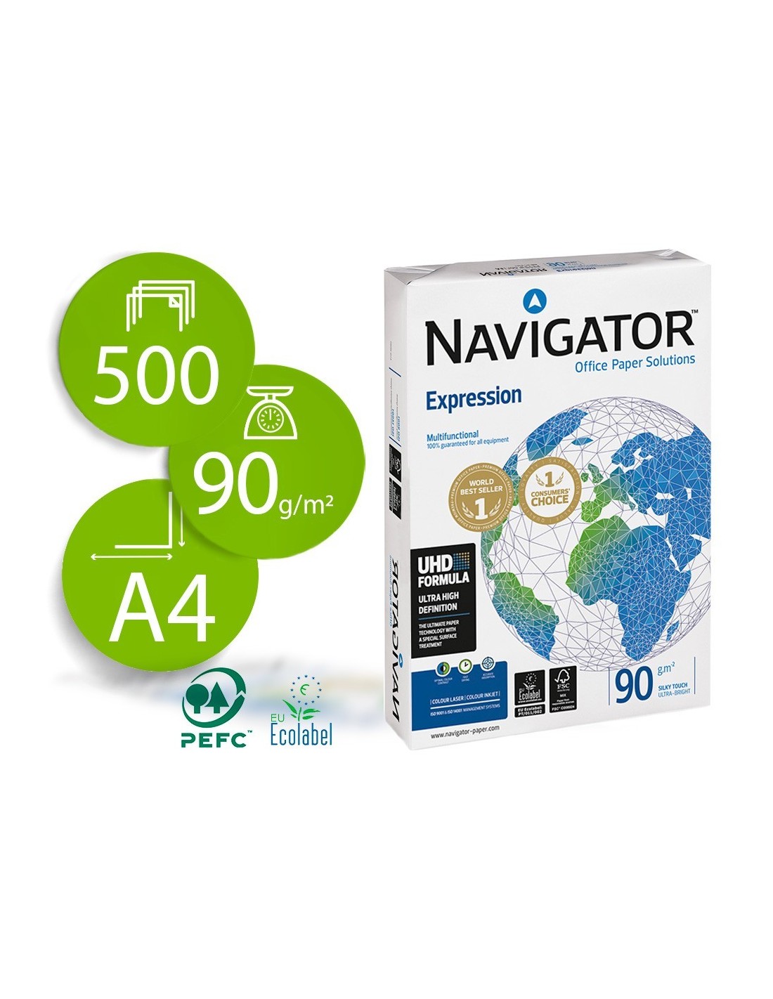 PAPEL FOTOCOPIADORA NAVIGATOR DIN A4 90 GRAMOS PAQUETE DE 500 HOJAS