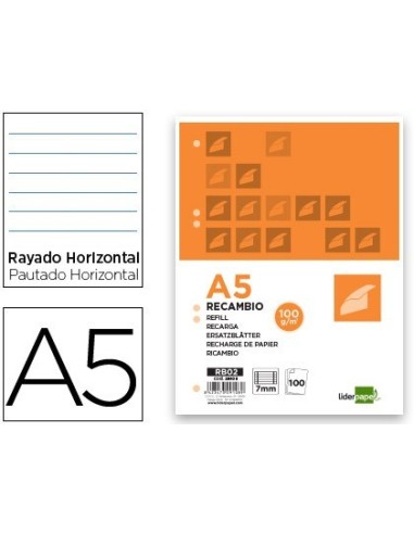 RECAMBIO LIDERPAPEL DIN A5 100 H 100G/M2 HORIZONTAL CON MARGEN 6 TALADROS