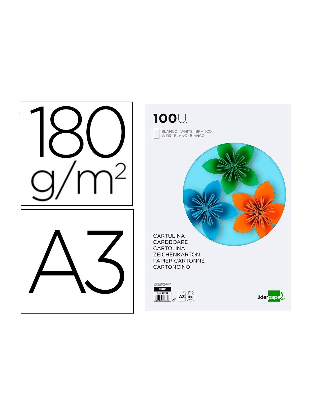 CARTULINA LIDERPAPEL A3 180G/M2 BLANCO PAQUETE DE 100 HOJAS