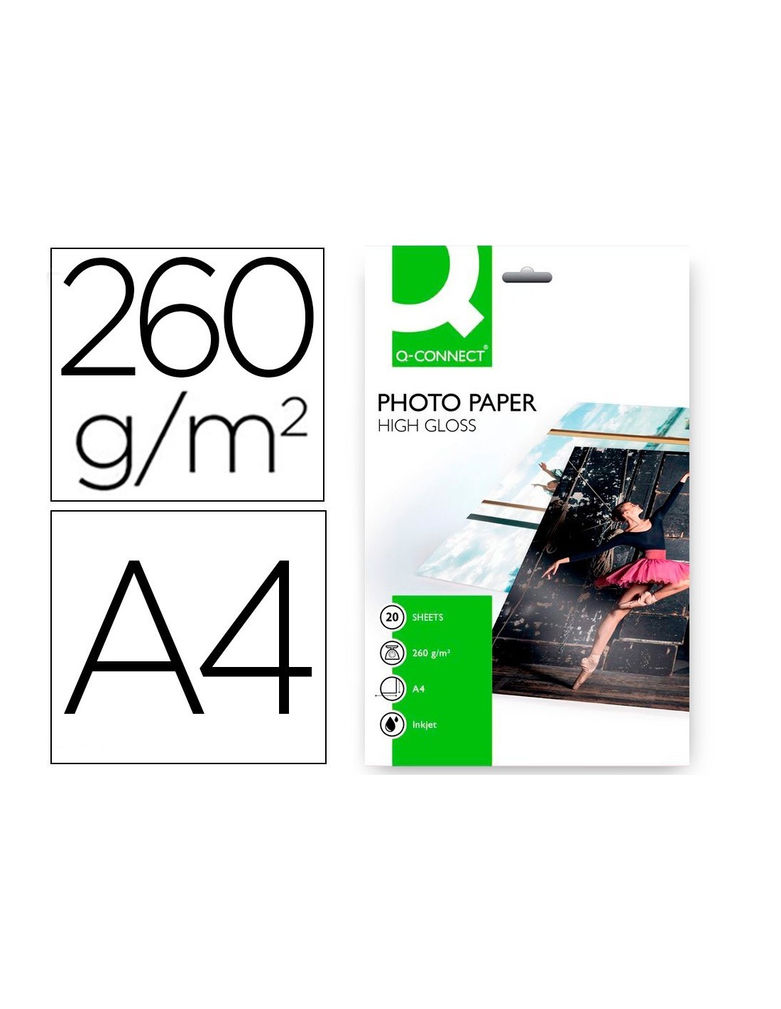 PAPEL Q-CONNECT FOTO GLOSSY KF02163 DIN A4 ALTA CALIDAD DIGITAL PHOTO -PARA INK-JET BOLSA DE 20 HOJAS DE 260 GR