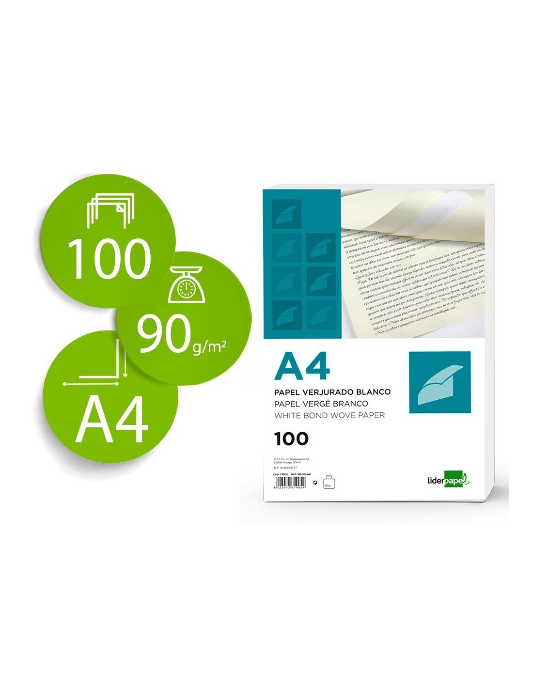 PAPEL VERJURADO LIDERPAPEL A4 90G/M2 CREMA PAQUETE DE 100 HOJAS