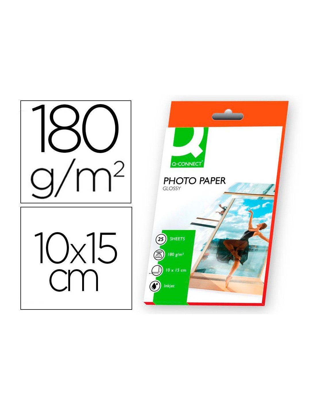 PAPEL Q-CONNECT FOTO GLOSSY -KF01905 -10X15 -DIGITAL PHOTO -PARA INK-JET -BOLSA DE 25 HOJAS DE 180 GR