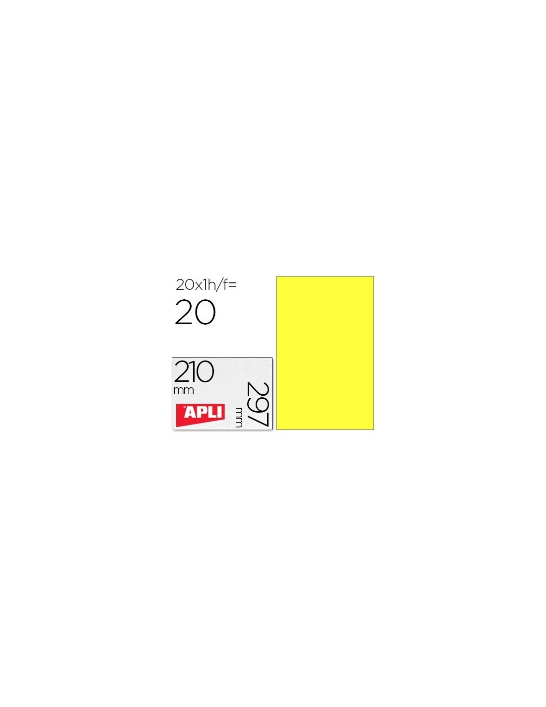 ETIQUETA ADHESIVA APLI 02878 TAMAÑO 210X297 MM PARA LASER FOTOCOPIADORA INK-JET CAJA CON20 HOJAS DIN A4 AMARILLO