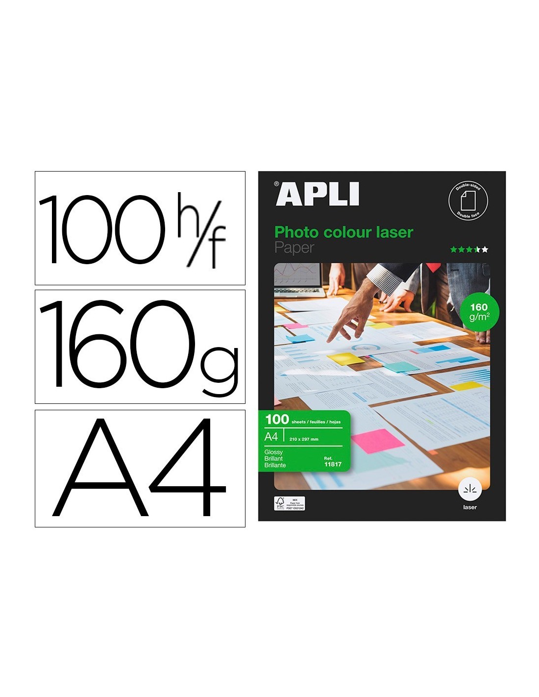 PAPEL FOTOGRAFICO APLI GLOSSY DOBLE CARA DIN A4 PACK DE 100 HOJAS 160 GR