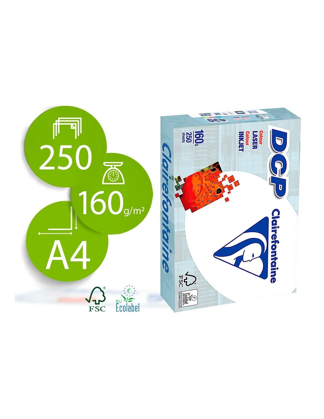 PAPEL FOTOCOPIADORA CLAIREFONTAINE DIN A4 160 GRAMOS PAQUETE DE 250 HOJAS