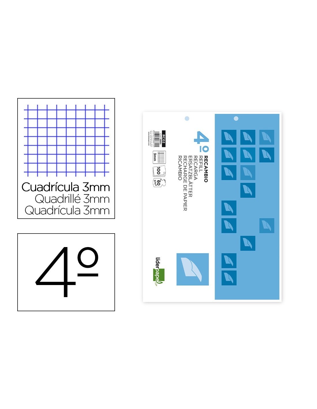 RECAMBIO LIDERPAPEL CUARTO APAISADO 100 H 2TCA-06 CUADRO 3 MM 2 TALADROS CON MARGEN