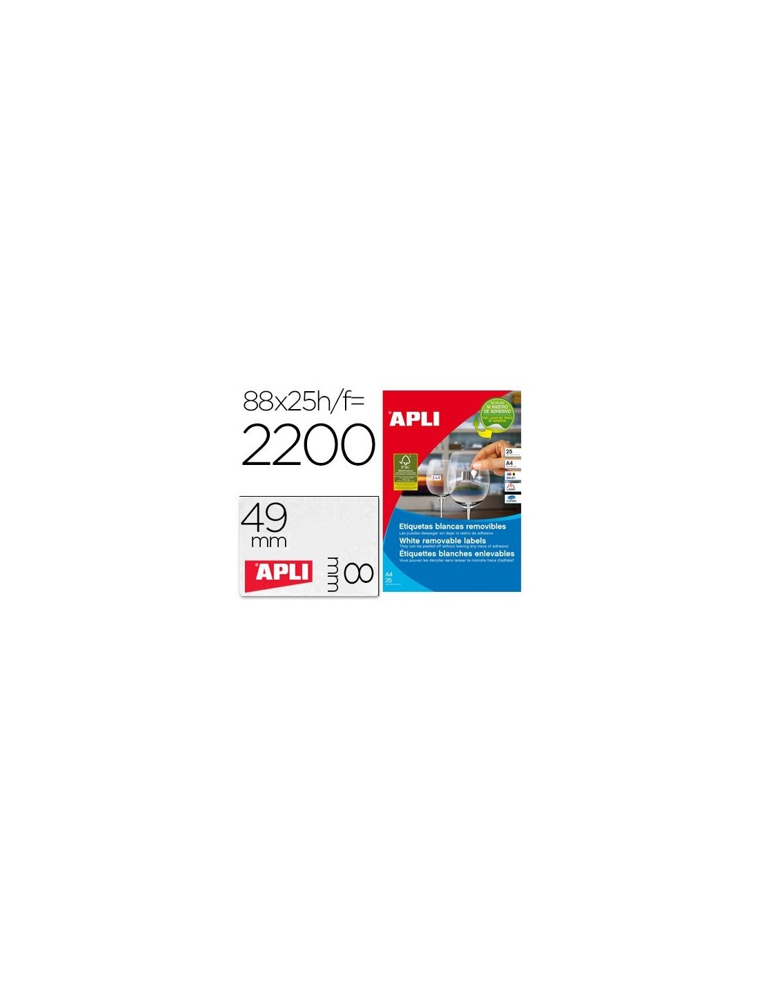 ETIQUETA ADHESIVA APLI REMOVIBLE 10314 ESPECIAL JOYERIA 45X8 MM FOTOCOPIADORA LASER INK-JET CAJA CON 25