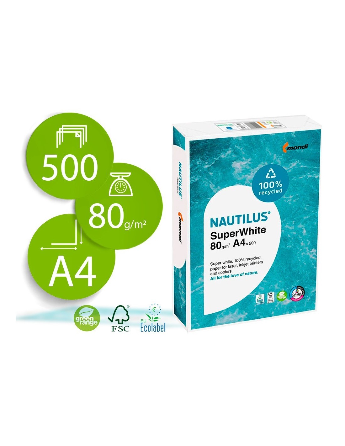 PAPEL FOTOCOPIADORA NAUTILUS SUPERWHITE 100% RECICLADO DIN A4 80 GRAMOS PAQUETE DE 500 HOJAS