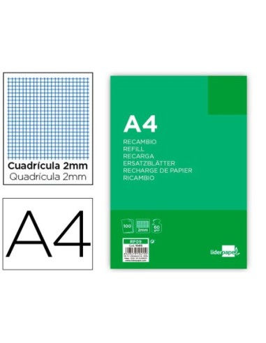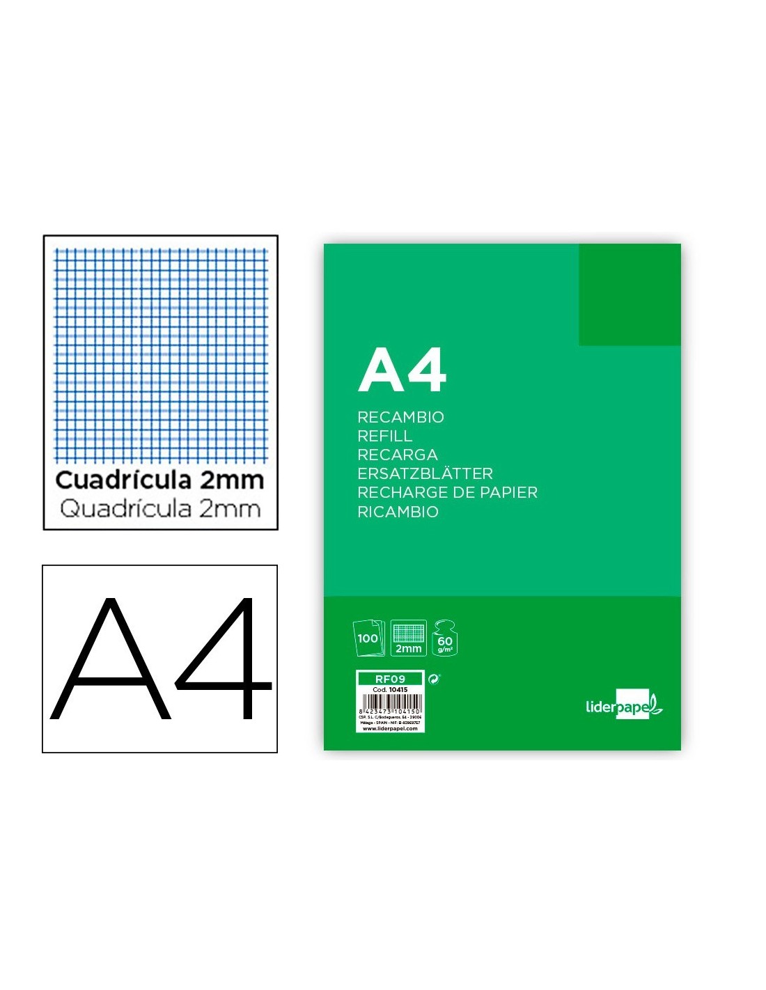 RECAMBIO LIDERPAPEL A4 100 HOJAS 60G/M2 MILIMETRADO SIN MARGEN 4 TALADROS