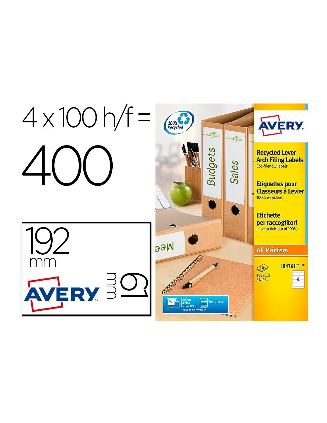 ETIQUETA ADHESIVA AVERY PAPEL BLANCO RECICLADO PARA ARCHIVADOR 192X61 MM LASER PACK DE 400 ETIQUETAS