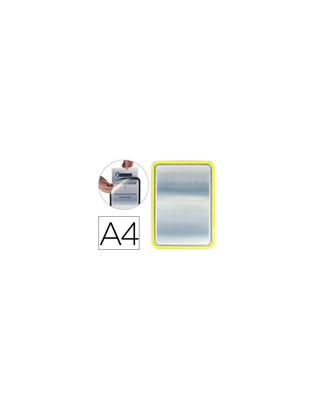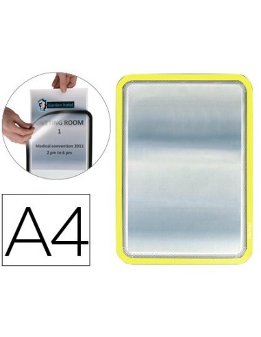 MARCO PORTA ANUNCIOS TARIFOLD MAGNETO DIN A4 DORSO ADHESIVO REMOVIBLE COLOR AMARILLO PACK DE 2 UNIDADES