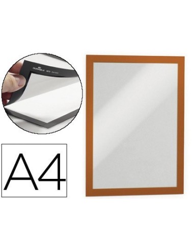 MARCO PORTA ANUNCIOS DURABLE MAGNETICO DIN A4 DORSO ADHESIVO REMOVIBLE COLOR NARANJA PACK DE 2 UNIDADES