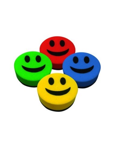 BORRADOR LIDERPAPEL PIZARRA BLANCA REDONDO 5 CM DIAMETRO MAGNETICO CARA SMILEY COLORES SURTIDOS