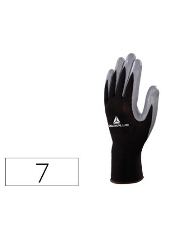 GUANTES DELTAPLUS DE PUNTO POLIESTER PALMA DE NITRILO ESPECIAL PARA MECANICA GRASAS ACEITES NEGRO-GRIS TALLA 7