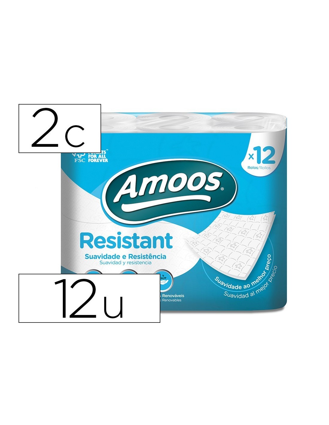PAPEL HIGIENICO AMOOS 2 CAPAS 100 MM DIAMETRO X 87 MM ALTO PAQUETE DE 12 ROLLOS