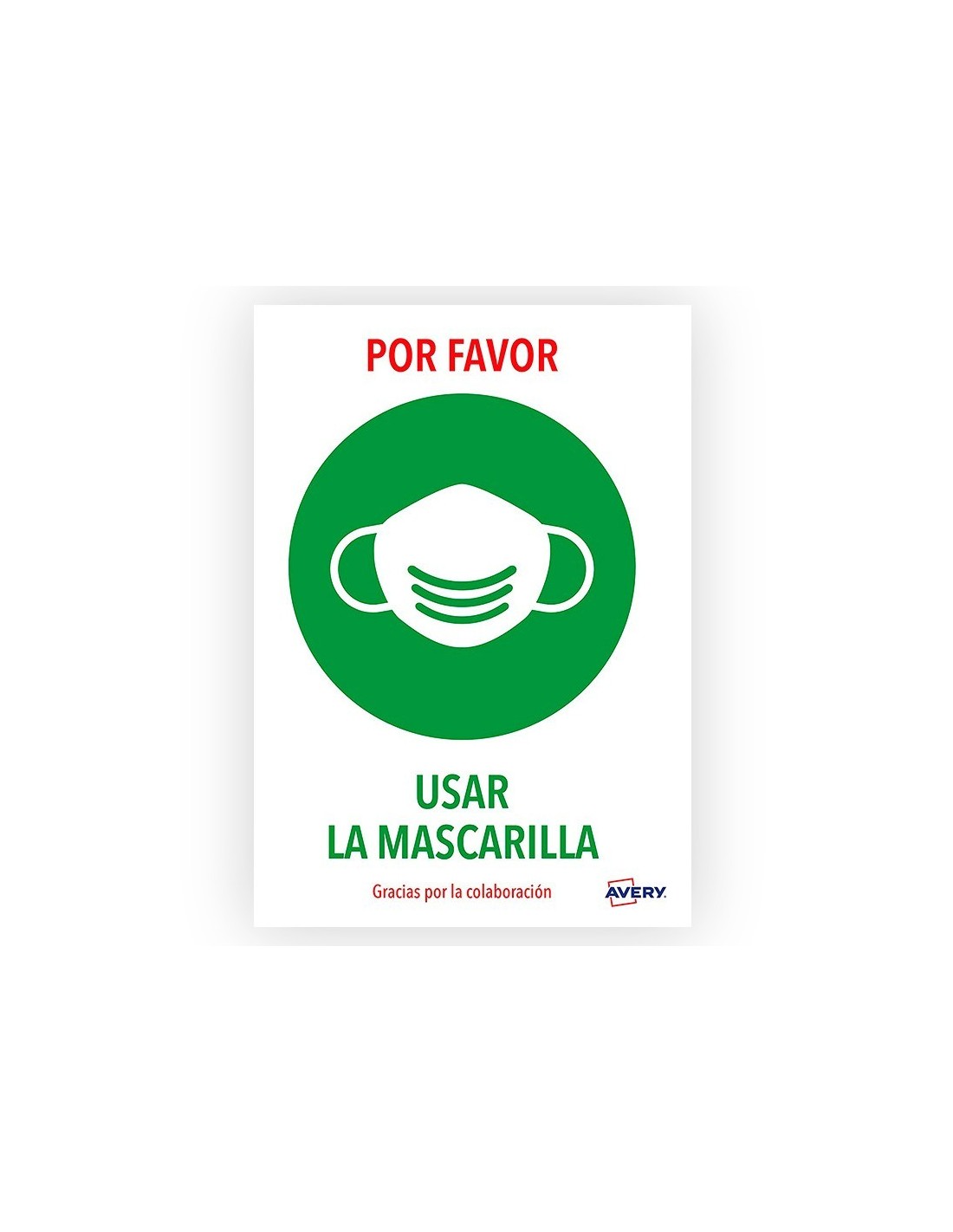 SEÑAL ADHESIVA AVERY USAR LA MASCARILLA DIN A4 RESISTENTE A LOS RAYOS UV PACK DE 2 UNIDADES